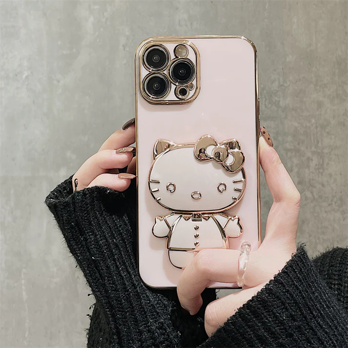 Kawaii Kitty cat Making Up Mirror Phone Case